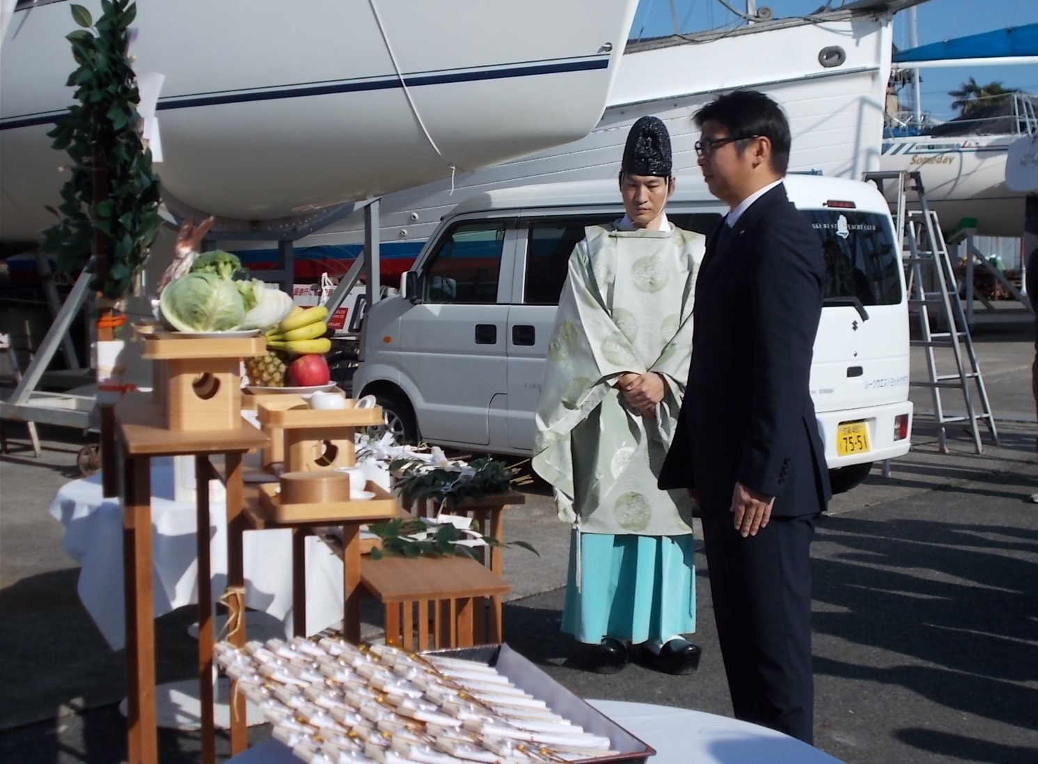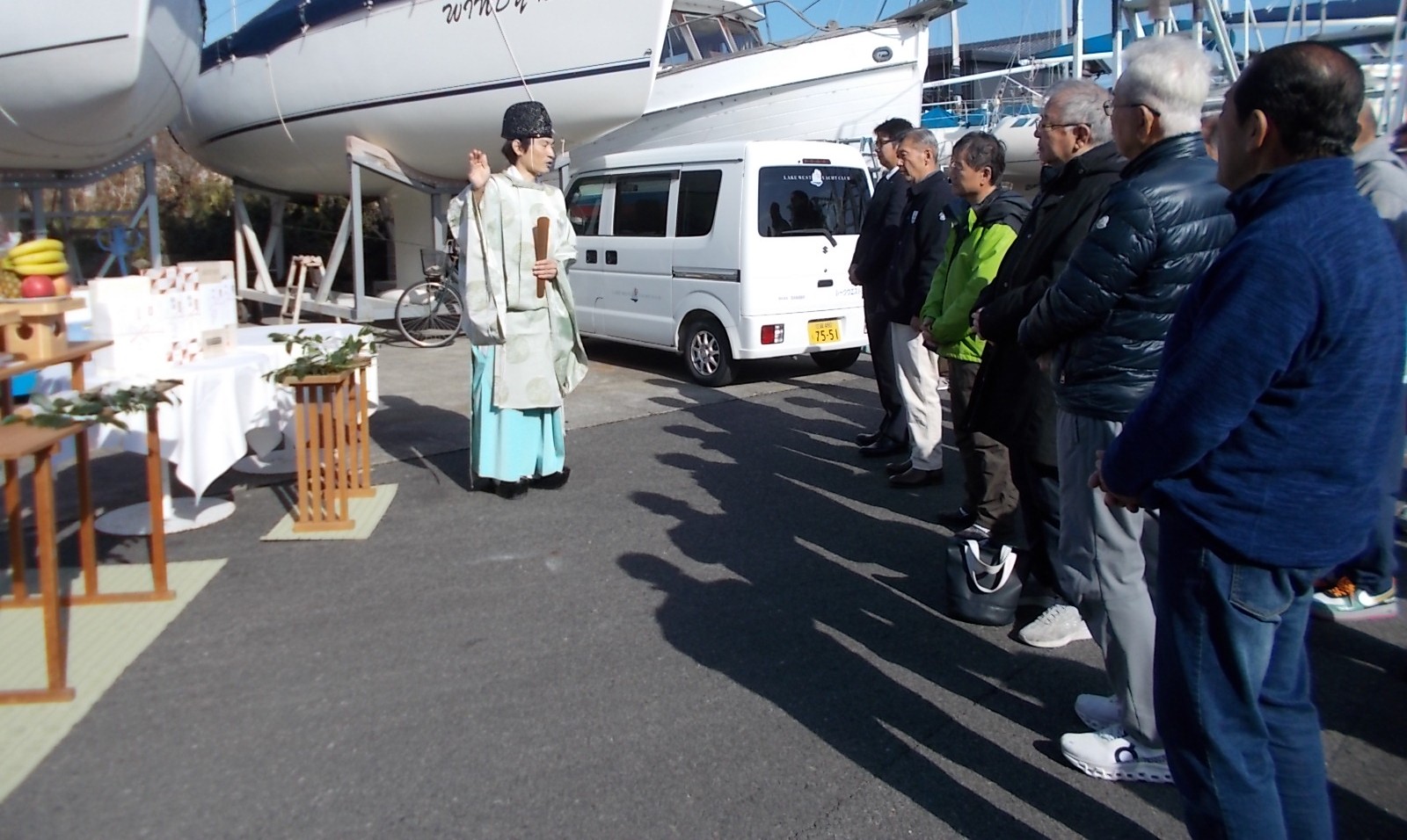 厳かな空気の中、神田神社宮司様に祝詞をあげていただき、オーナー様や新社長、スタッフにて一年の航行の安全や健康など、心を込めて祈願いたしました。